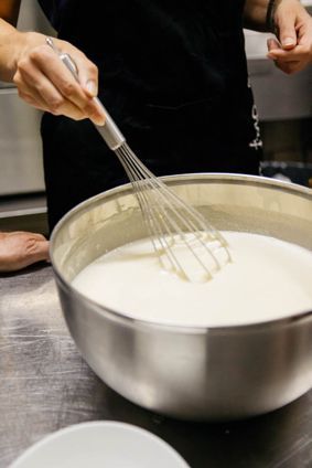 - 3/ Gradually pour in the flour while whisking the mixture. Run the whisk along the sides of the bowl to avoid any flour lumps.