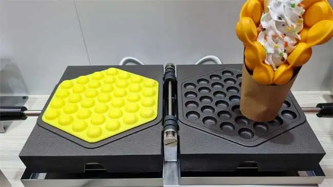 Bubble waffles: Learn to make this playful variation — round puffs of batter connected together, rolled into a cone and filled with ice cream, fruit, whipped cream, and more.